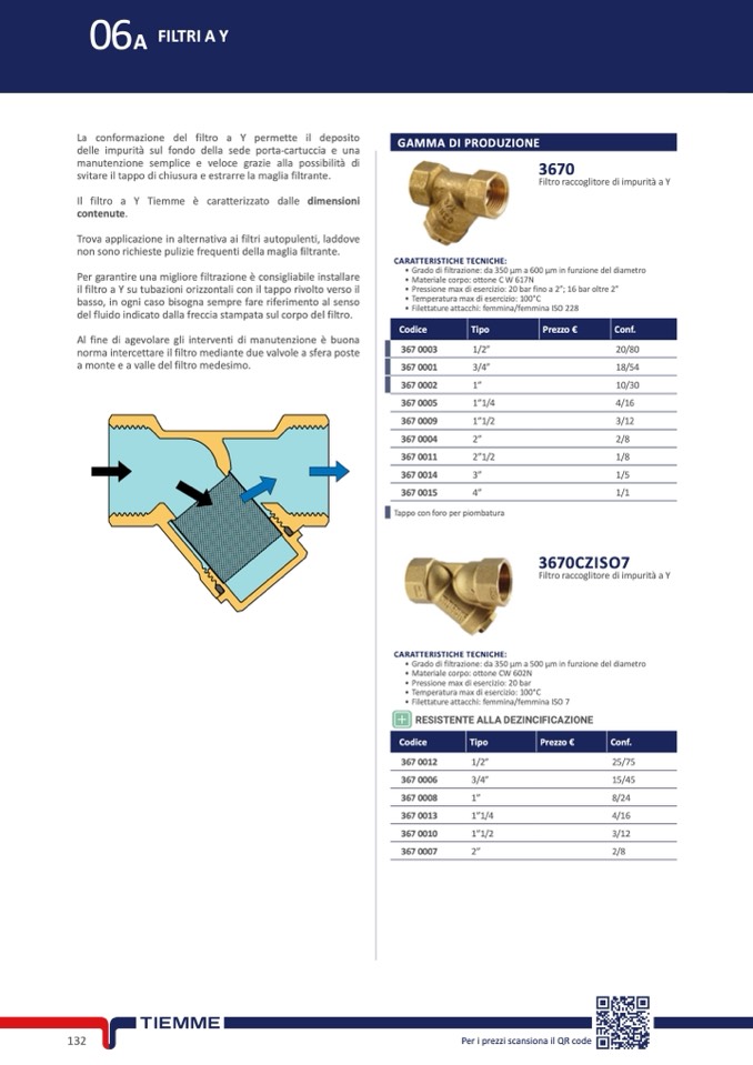 • Grado di filtrazione: da 350 μm a 500 μm in funzione del diametro