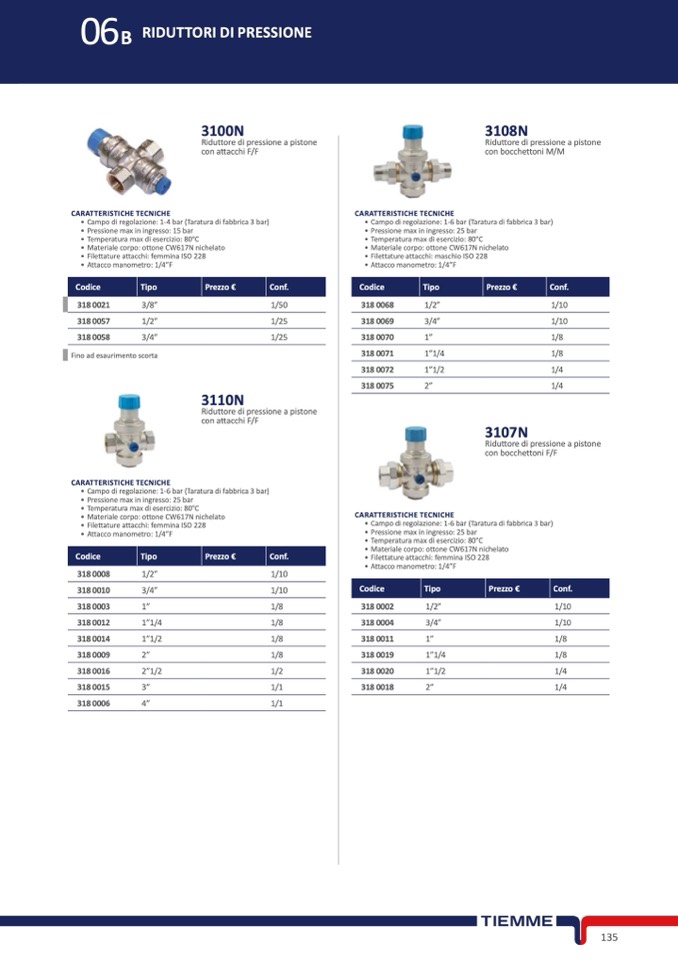 • Campo di regolazione: 1-6 bar (Taratura di fabbrica 3 bar)