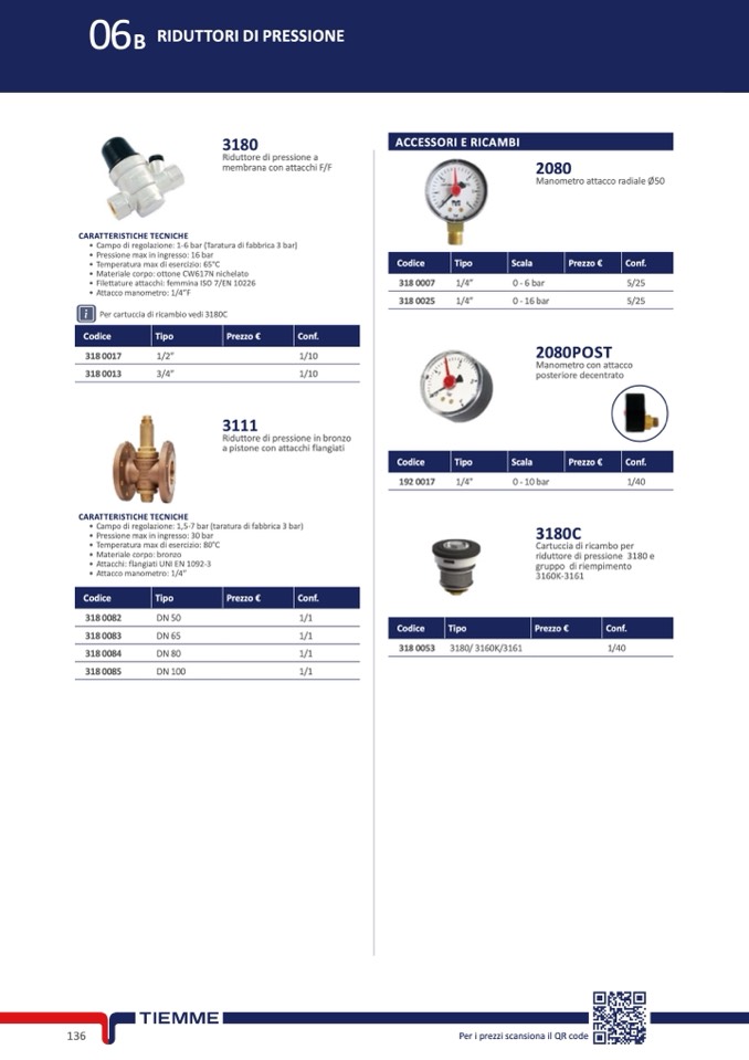 • Campo di regolazione: 1-6 bar (Taratura di fabbrica 3 bar)