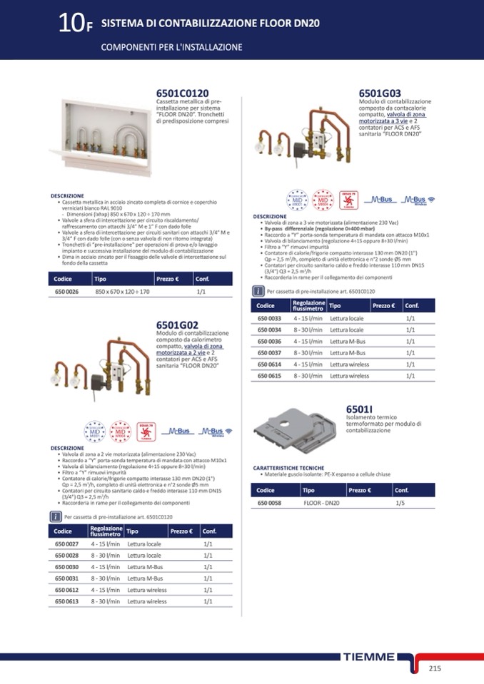 • Contatore di calorie/frigorie compatto interasse 130 mm DN20 (1")