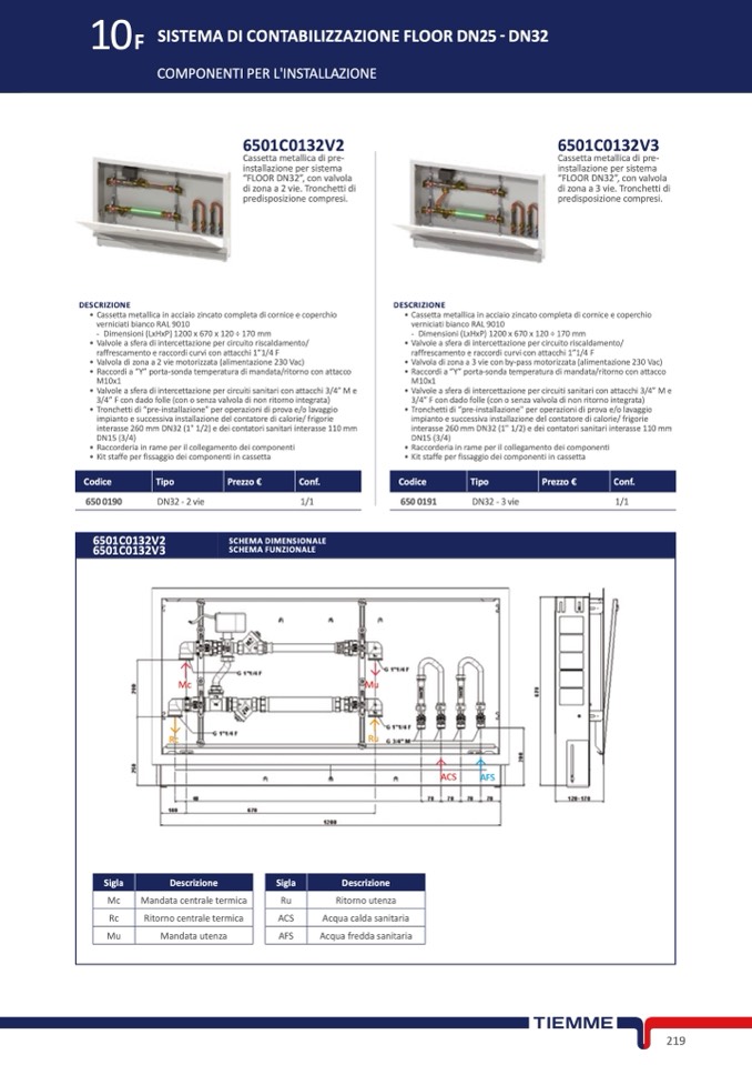interasse 260 mm DN32 (1" 1/2) e dei contatori sanitari interasse 110 mm