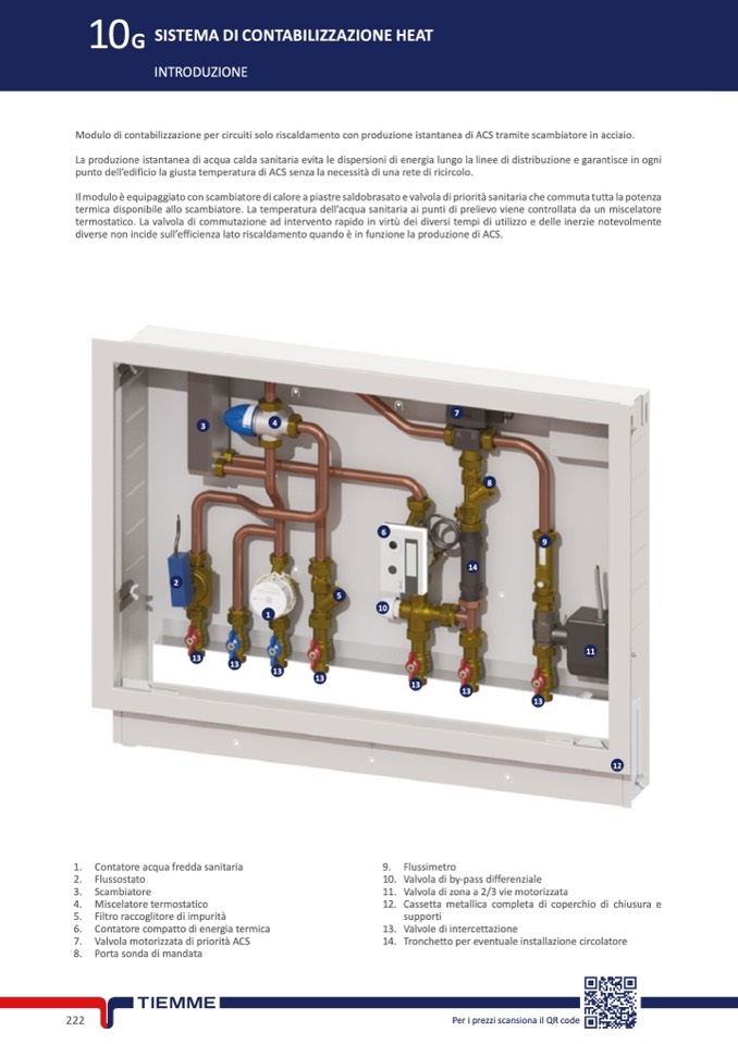 Modulo di contabilizzazione per circuiti solo riscaldamento con produzione istantanea di ACS tramite scambiatore in acciaio.