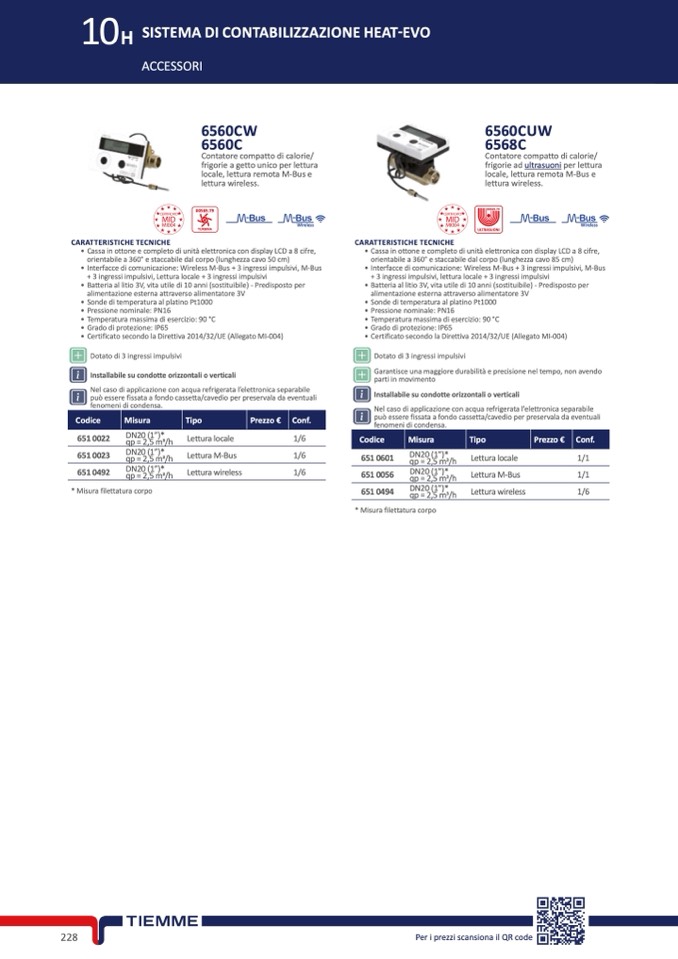• Interfacce di comunicazione: Wireless M-Bus + 3 ingressi impulsivi, M-Bus