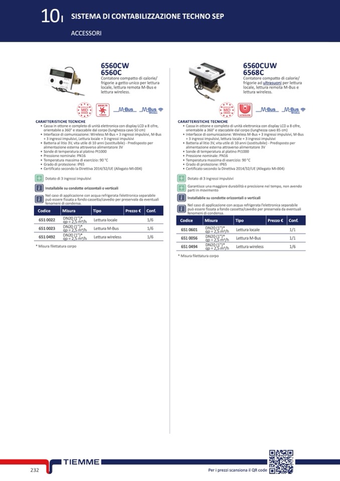 • Interfacce di comunicazione: Wireless M-Bus + 3 ingressi impulsivi, M-Bus
