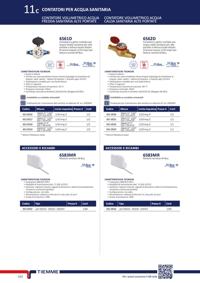 • Modalità di trasmissione dati: T1 (EN 13757)