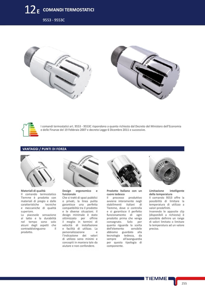 I comandi termostatici art. 9553 - 9553C rispondono a quanto richiesto dal Decreto del Ministero dell’Economia