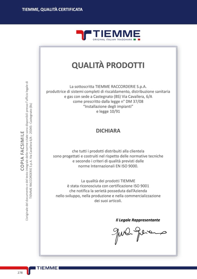 La sottoscritta TIEMME RACCORDERIE S.p.A.