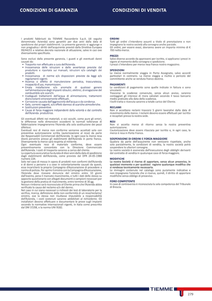 I prodotti fabbricati da TIEMME Raccorderie S.p.A. (di seguito