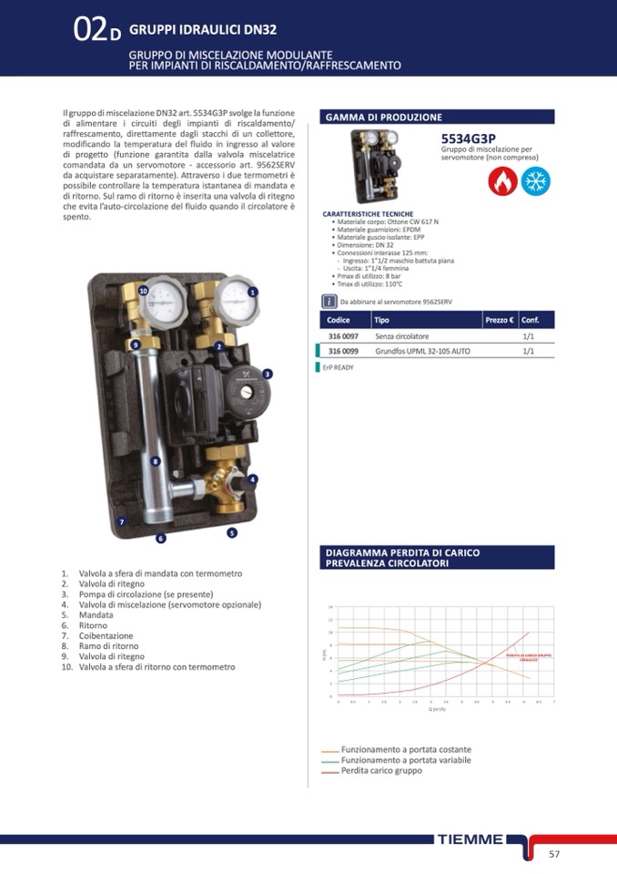 Il gruppo di miscelazione DN32 art. 5534G3P svolge la funzione