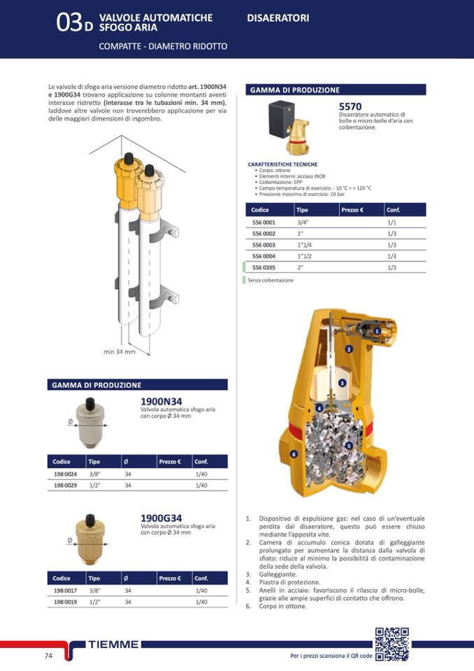 Le valvole di sfogo aria versione diametro ridotto art. 1900N34