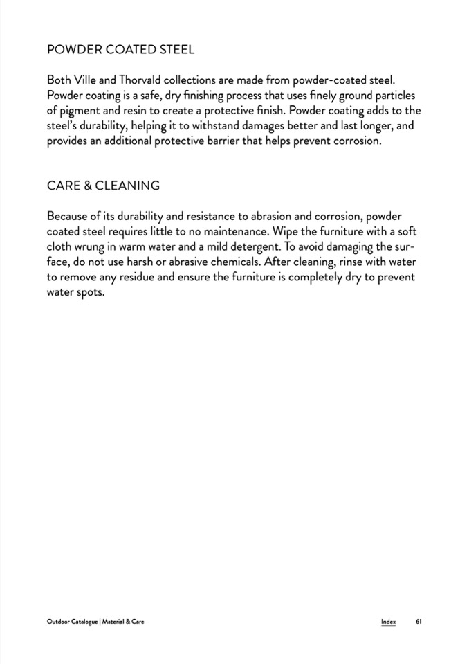 Both Ville and Thorvald collections are made from powder-coated steel.
