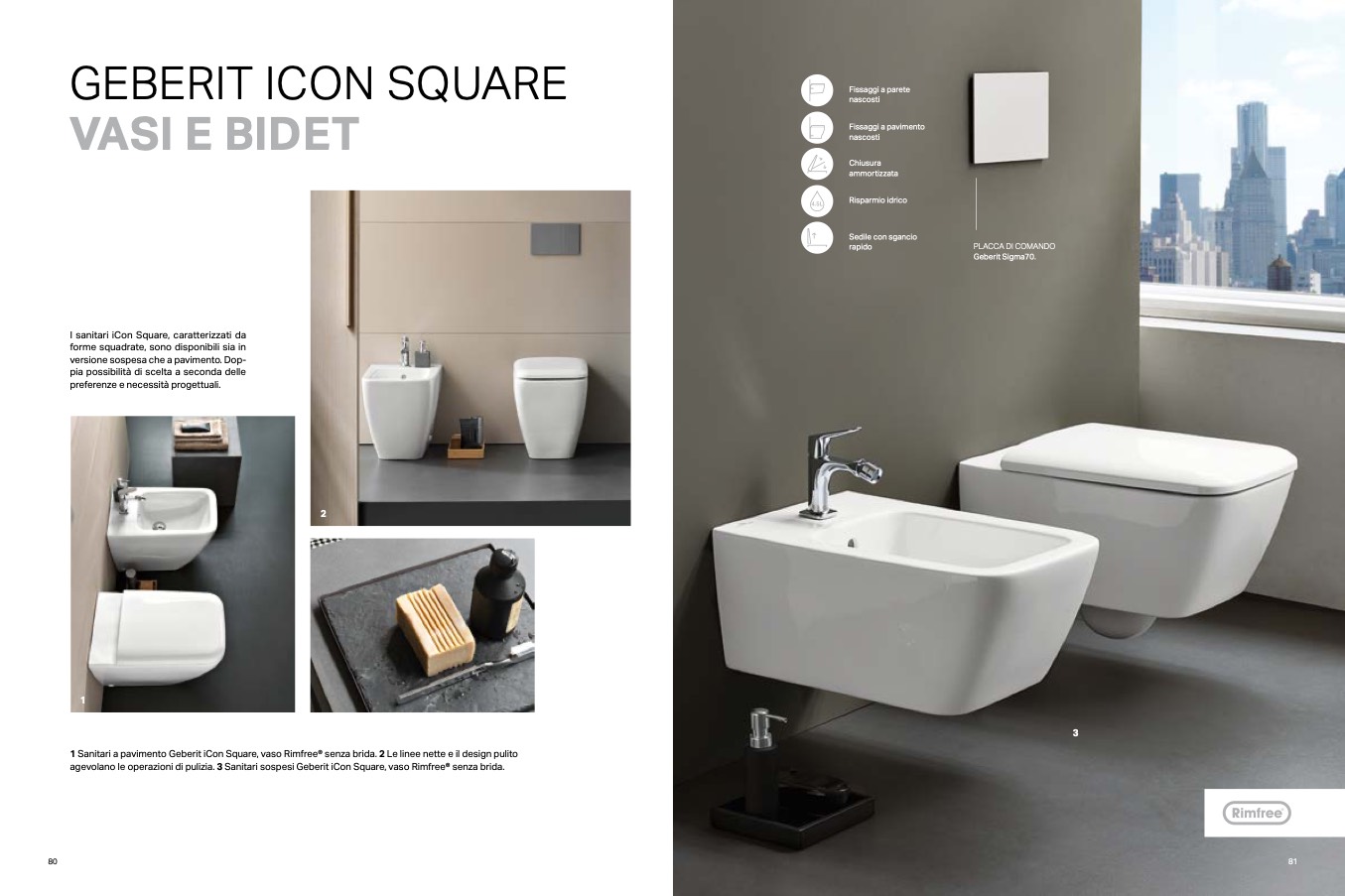 1 Sanitari a pavimento Geberit iCon Square, vaso Rimfree® senza brida. 2 Le linee nette e il design pulito