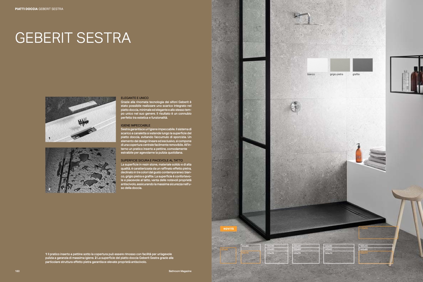 pulizia a garanzia di massima igiene. 2 La superficie del piatto doccia Geberit Sestra grazie alla