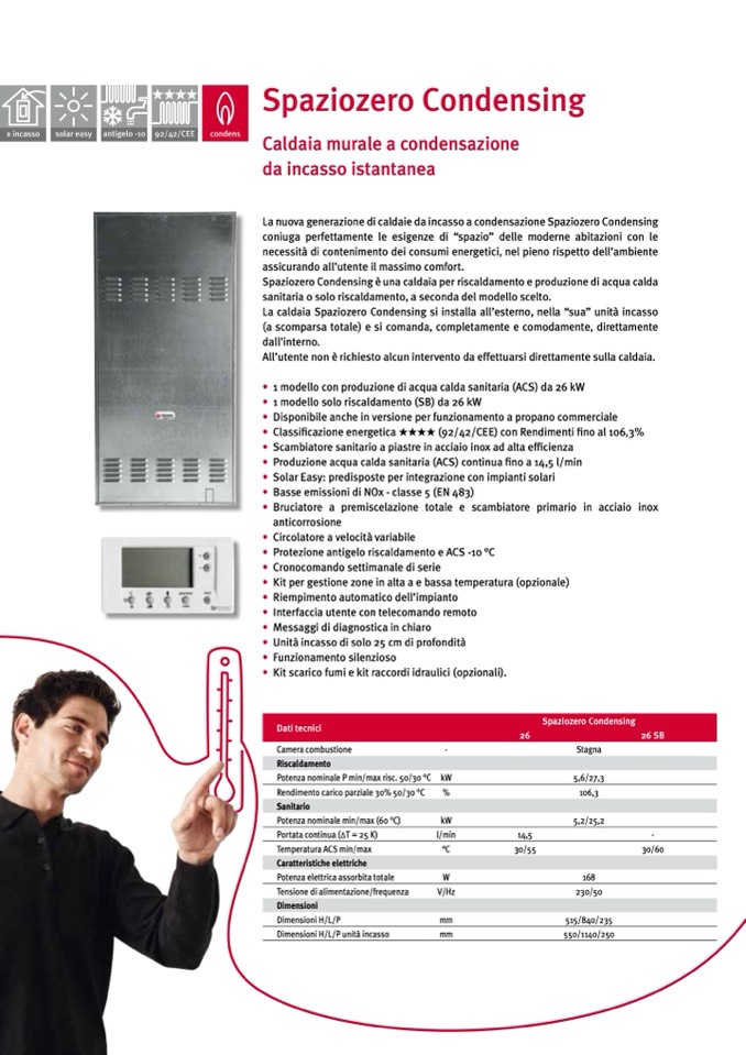 La nuova generazione di caldaie da incasso a condensazione Spaziozero Condensing