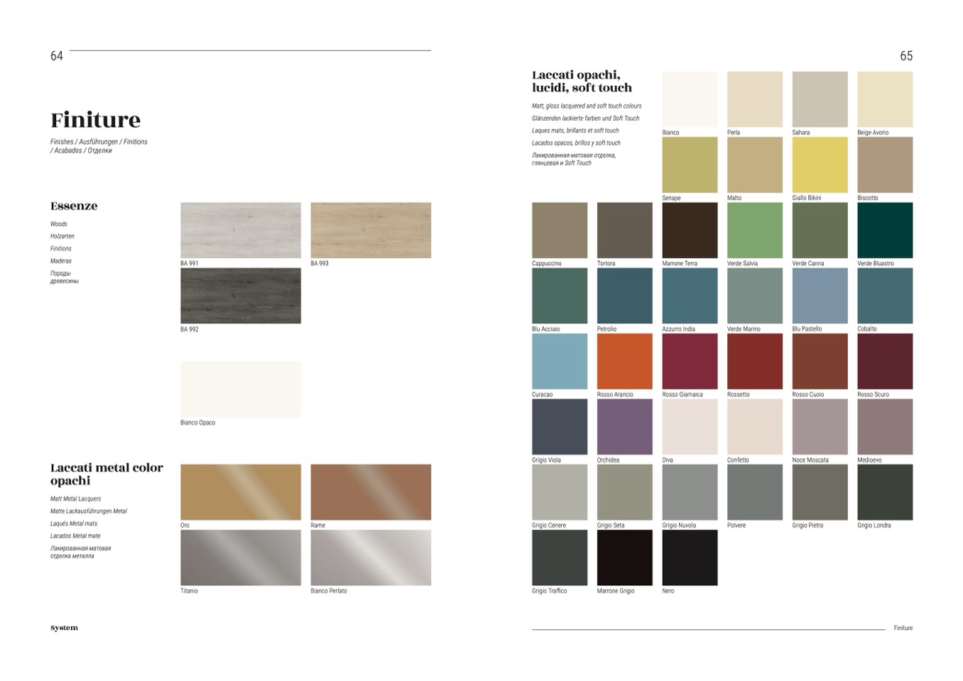 Matt, gloss lacquered and soft touch colours