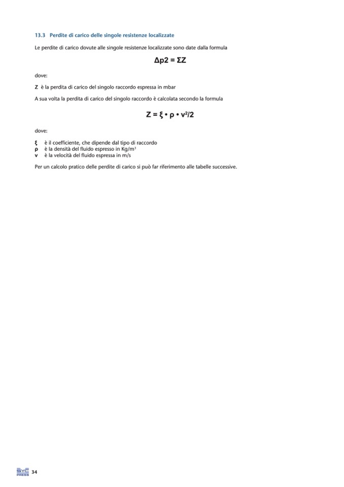 A sua volta la perdita di carico del singolo raccordo è calcolata secondo la formula