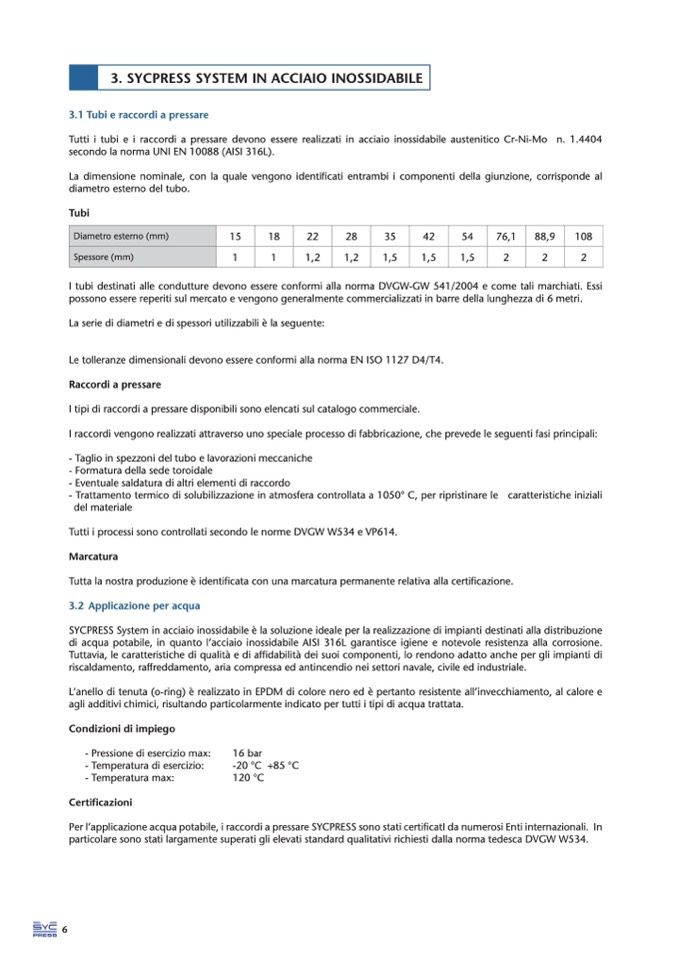 Per l’applicazione acqua potabile, i raccordi a pressare SYCPRESS sono stati certificatI da numerosi Enti internazionali. In