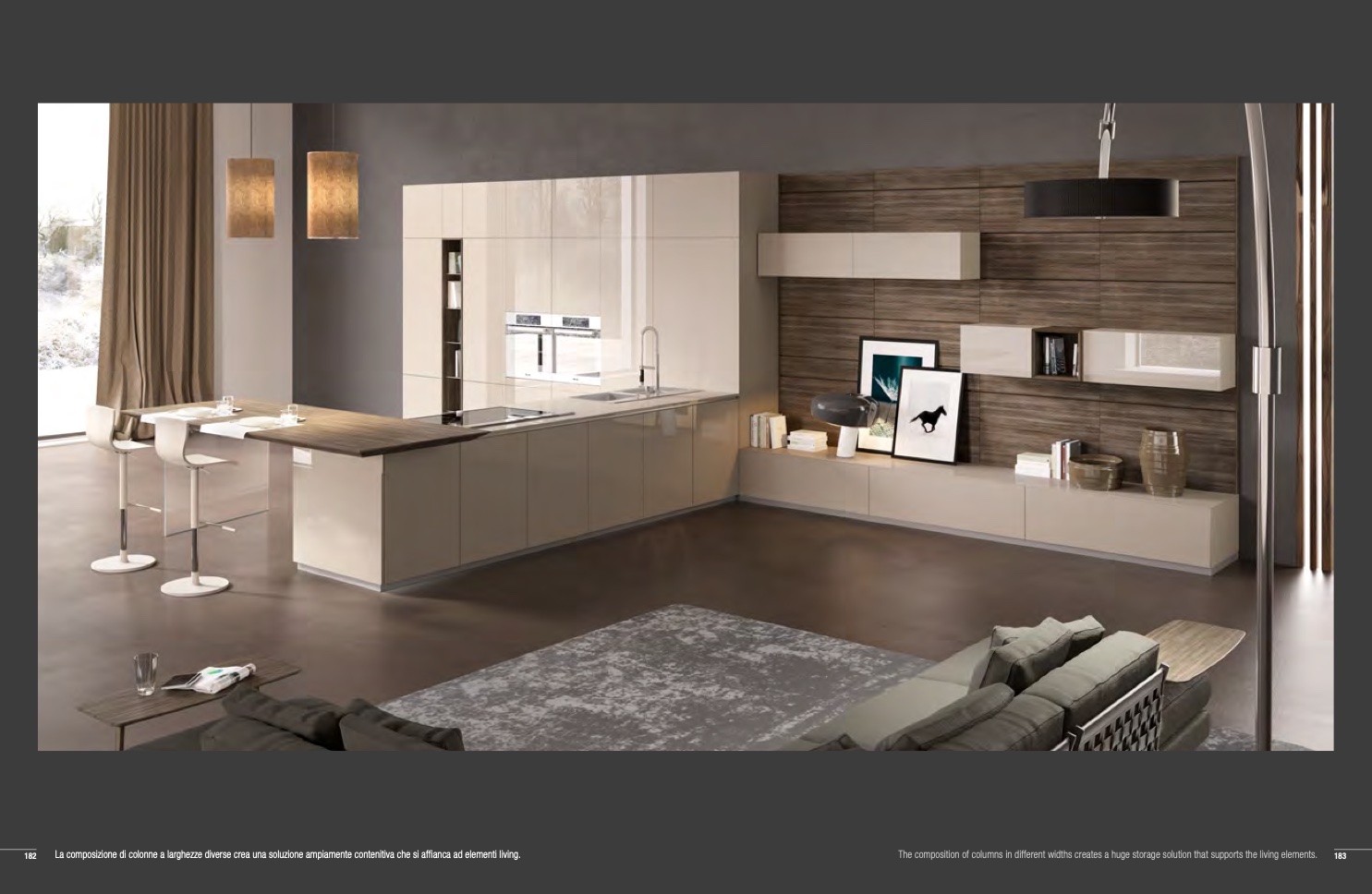 La composizione di colonne a larghezze diverse crea una soluzione ampiamente contenitiva che si af