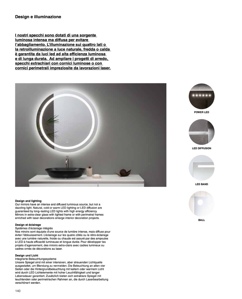 Mirrors in extra-clear glass with lighted frame or with perimetral frames