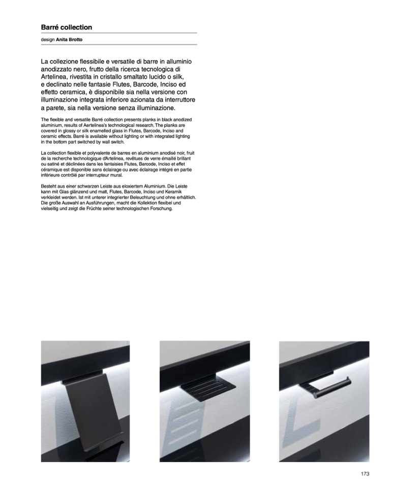 ceramic effects. Barré is available without lighting or with integrated lighting