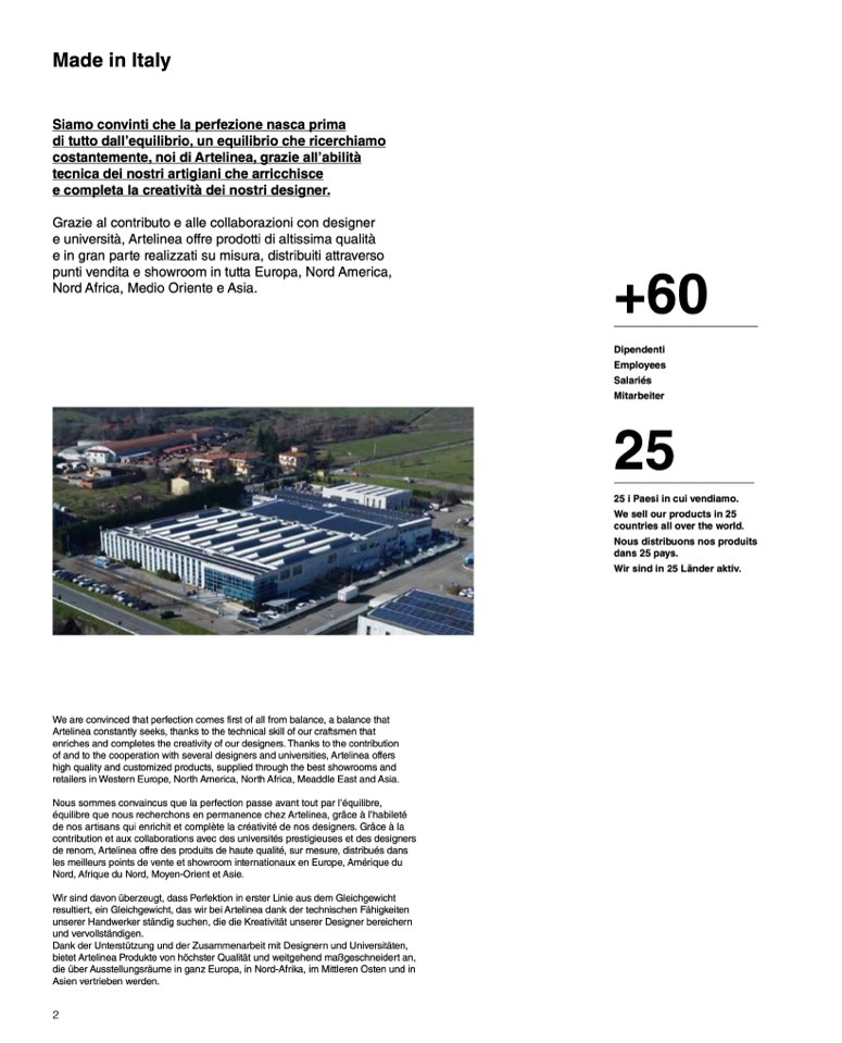 of and to the cooperation with several designers and universities, Artelinea offers