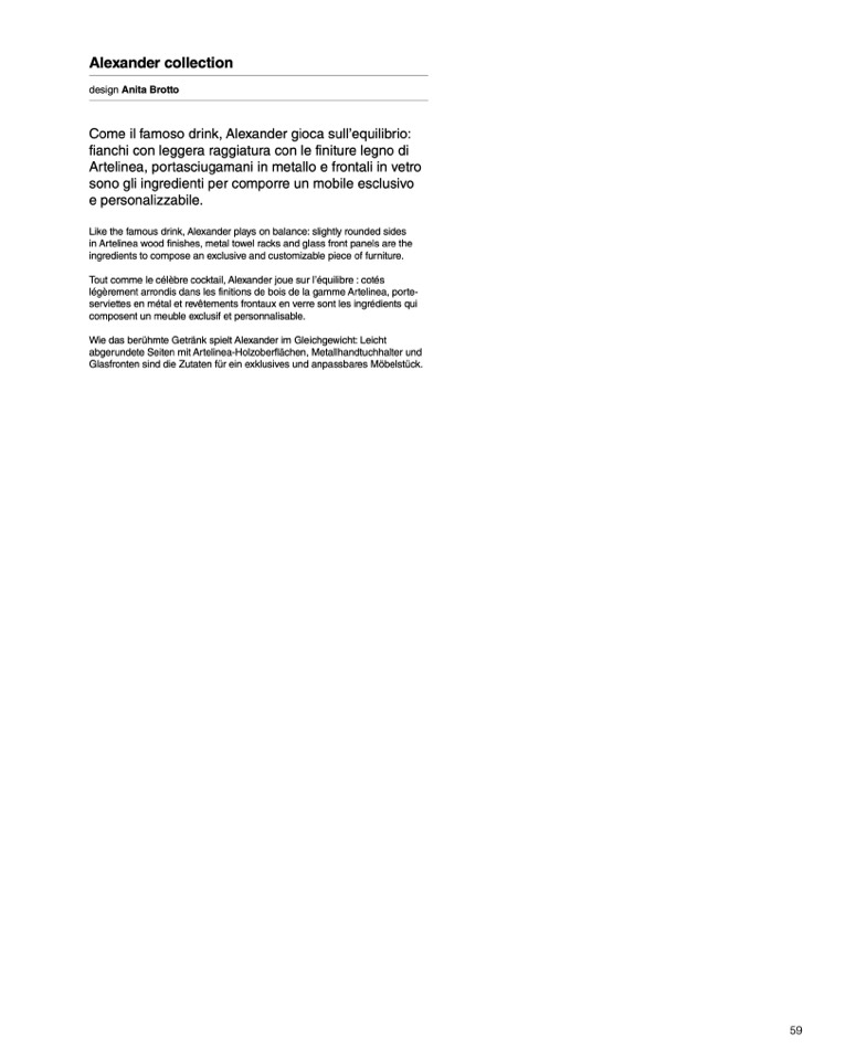 in Artelinea wood finishes, metal towel racks and glass front panels are the