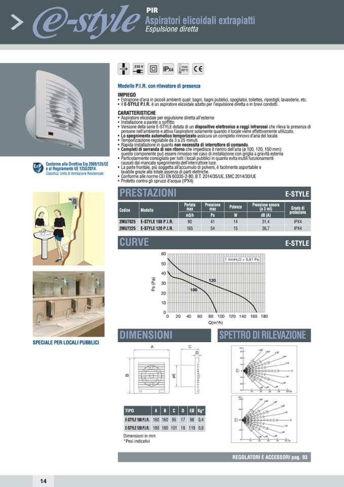 • Il E-STYLE P.I.R. è un aspiratore elicoidale adatto per l’espulsione diretta o in brevi condotti.