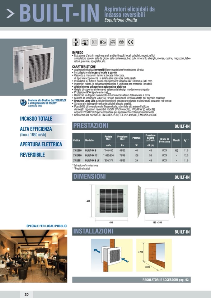 • Estrazione d’aria in medi e grandi ambienti quali: locali pubblici, negozi, uffici,