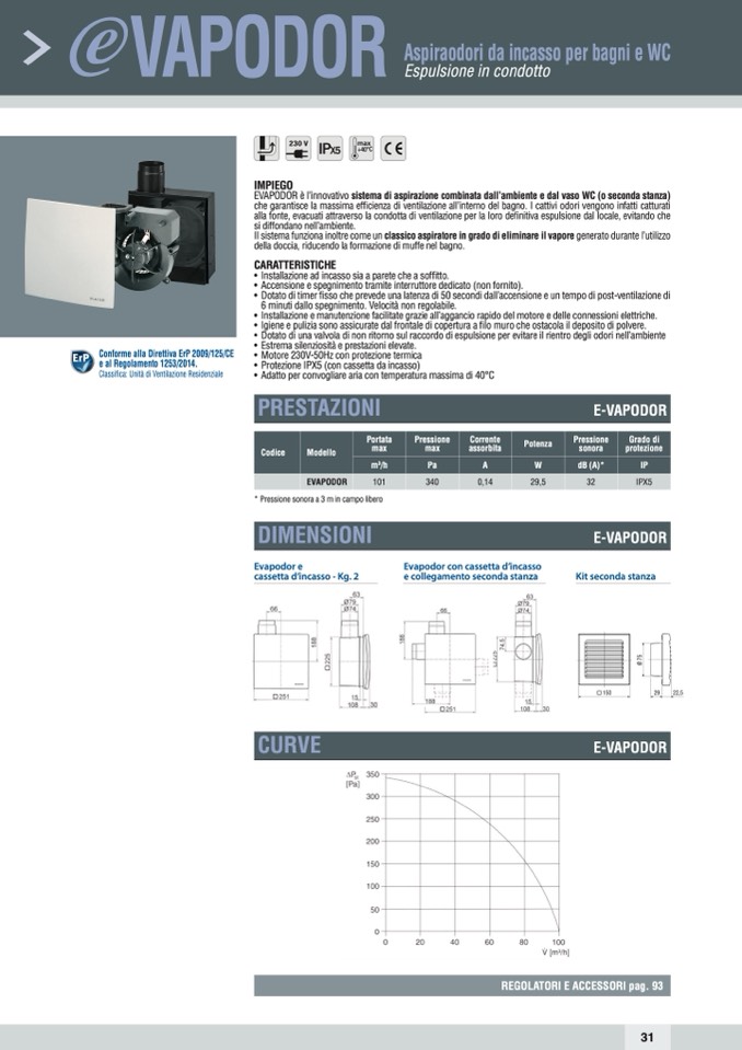 • Dotato di una valvola di non ritorno sul raccordo di espulsione per evitare il rientro degli odori nell’ambiente