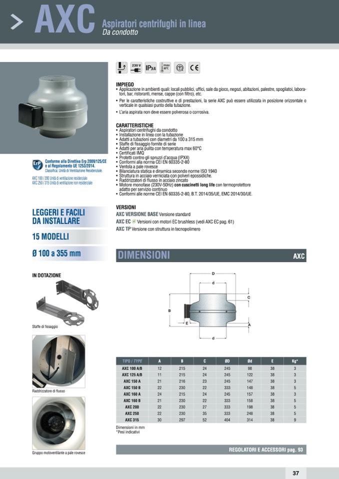 Versioni con motori EC brushless (vedi AXC EC pag. 61)