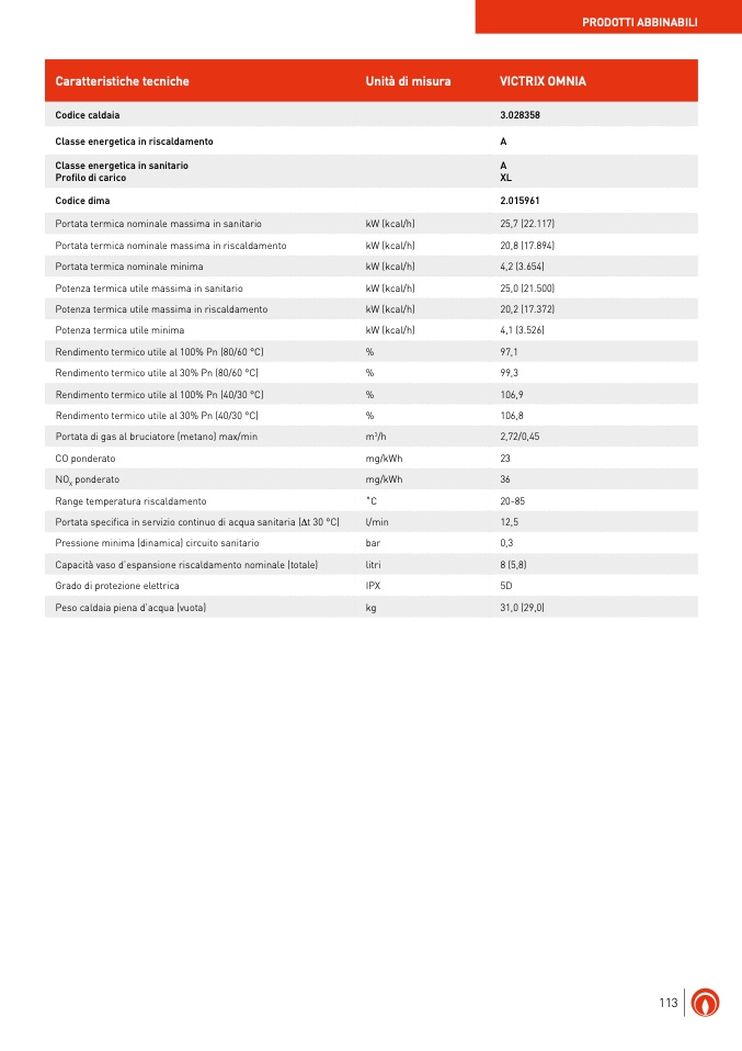Rendimento termico utile al 100% Pn (80/60 °C)