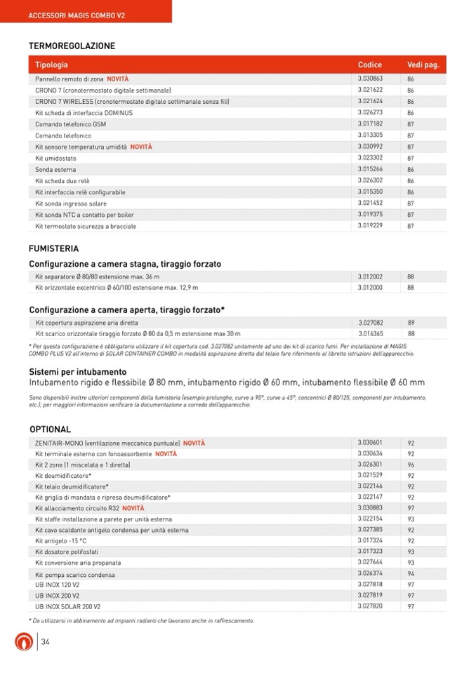 Sono disponibili inoltre ulteriori componenti della fumisteria (esempio prolunghe, curve a 90°, curve a 45°, concentrici Ø 80/125, componenti per intubamento,