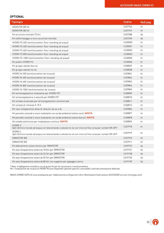 MAGIS COMBO V2/PLUS sono predisposte per l'abbinamento ai Disgiuntori Idrici Multimpianti (vedi sezione ACCESSORI sul sito immergas.com).
