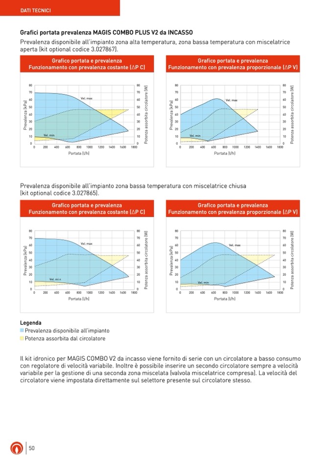 Prevalenza disponibile all’impianto zona alta temperatura, zona bassa temperatura con miscelatrice