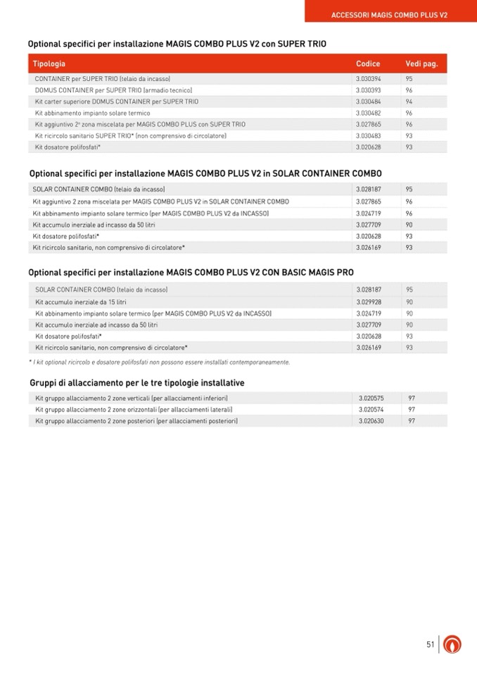 * I kit optional ricircolo e dosatore polifosfati non possono essere installati contemporaneamente.