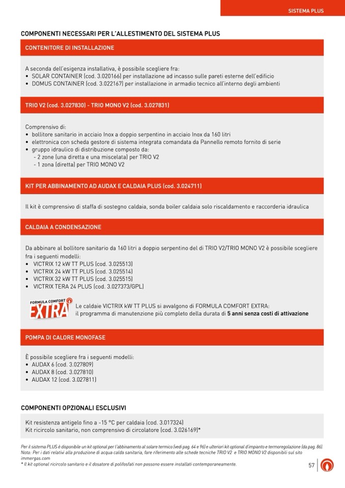 Per il sistema PLUS è disponibile un kit optional per l’abbinamento al solare termico (vedi pag. 64 e 96) e ulteriori kit optional d’impianto e termoregolazione (da pag. 86).