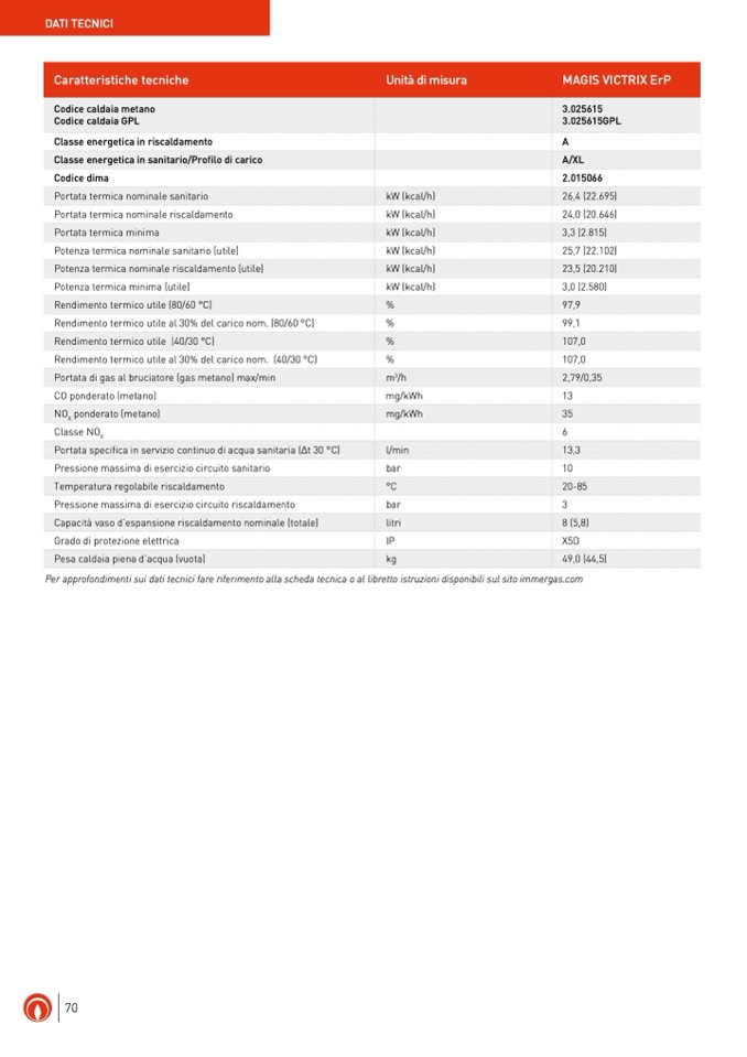 Per approfondimenti sui dati tecnici fare riferimento alla scheda tecnica o al libretto istruzioni disponibili sul sito immergas.com