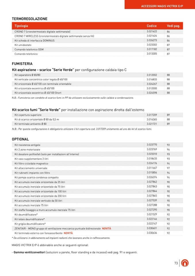 MAGIS VICTRIX ErP è abbinabile anche ai seguenti optional: