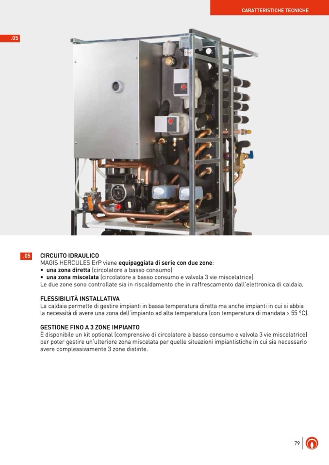 • una zona miscelata (circolatore a basso consumo e valvola 3 vie miscelatrice)