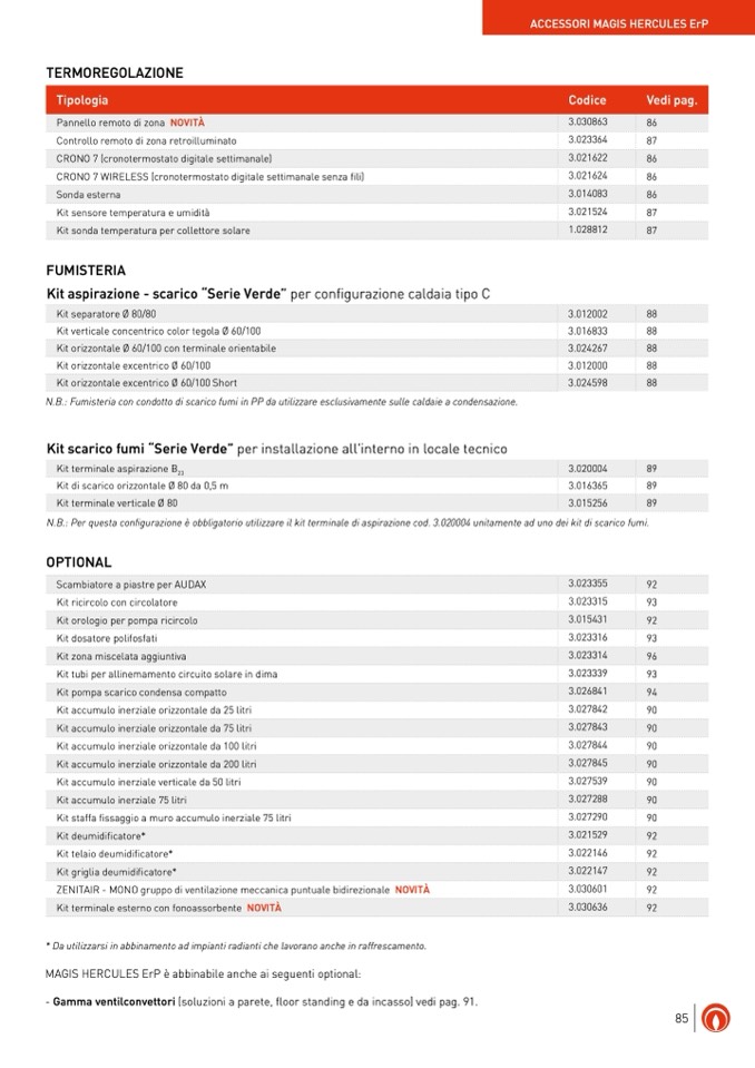 - Gamma ventilconvettori (soluzioni a parete, floor standing e da incasso) vedi pag. 91.