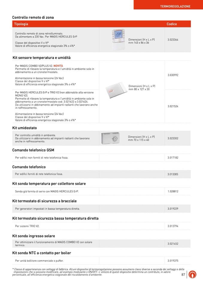 * Classe di appartenenza con settaggi di fabbrica. Alcuni dispositivi di termoregolazione possono assumere classi diverse a seconda dei settaggi e delle