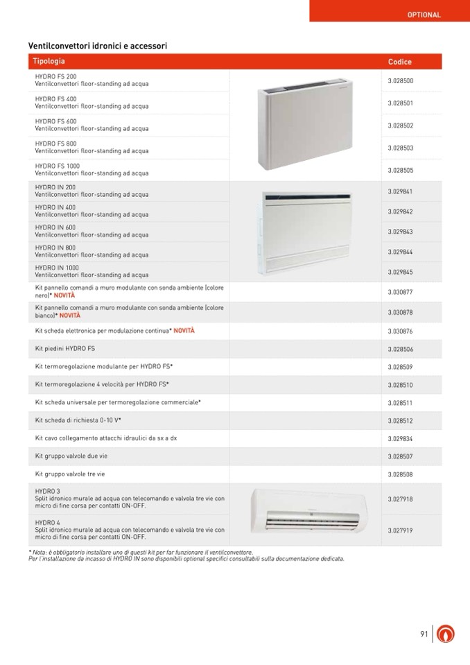 * Nota: è obbligatorio installare uno di questi kit per far funzionare il ventilconvettore.