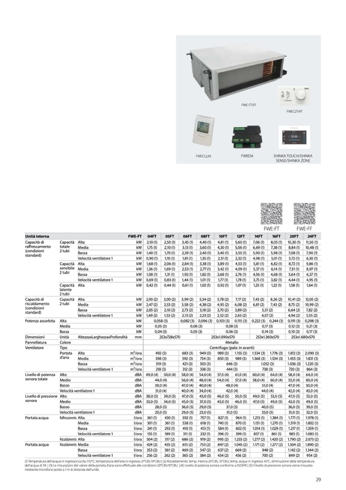 dell'acqua di 5K. | (3) Le misurazioni del valore della portata d'aria sono effettuate alle condizioni 20°CBS/15°CBU. | (4) Livello di potenza sonora conforme a ISO3741 | (5) Il livello di pressione sonora viene misurato