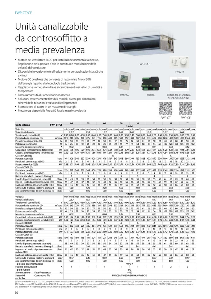 (1) Temperatura dell'acqua 7°C / 12°C, temperatura dell'aria bulbo secco 27°C, bulbo umido 19°C (umidit