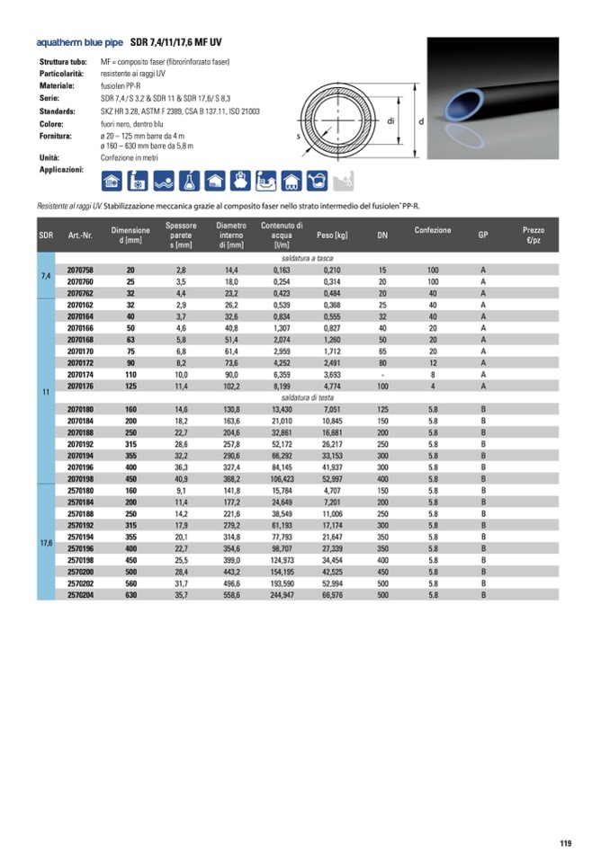 aquatherm blue pipe SDR 7,4/11/17,6 MF UV
