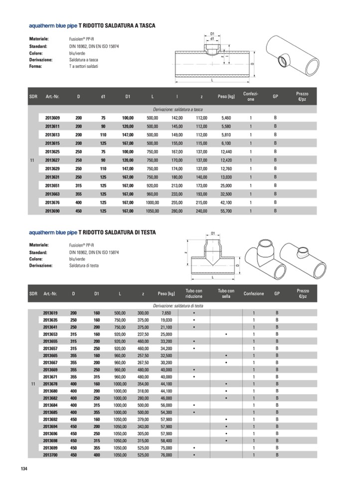 aquatherm blue pipe T RIDOTTO SALDATURA A TASCA