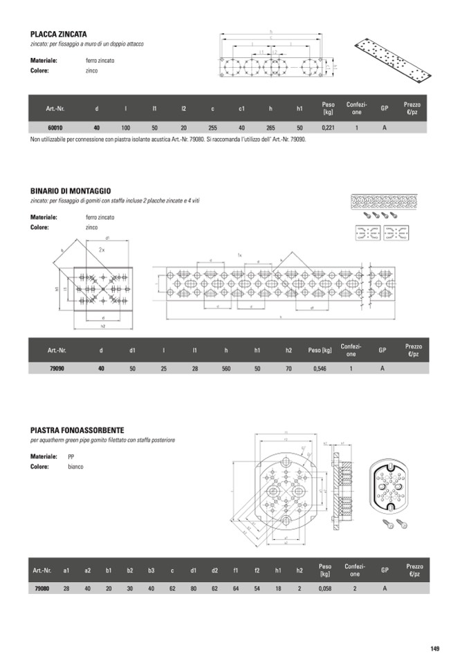 zincato: per fissaggio di gomiti con staffa incluse 2 placche zincate e 4 viti