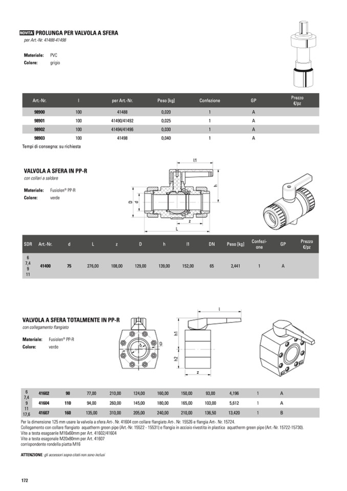 Per la dimensione 125 mm usare la valvola a sfera Art-. Nr. 41604 con collare flangiato Art-. Nr. 15526 e flangia Art-. Nr. 15724.