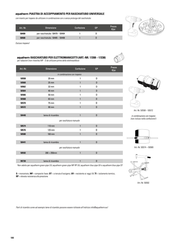 Parti di ricambio come ad esempio lame di ricambio possono essere richieste all‘indirizzo info@aquatherm.eu!
