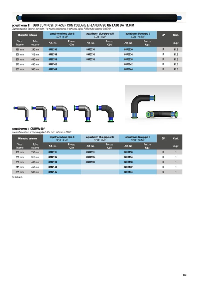 aquatherm TI TUBO COMPOSITO FASER CON COLLARE E FLANGIA SU UN LATO DA 11,6 M